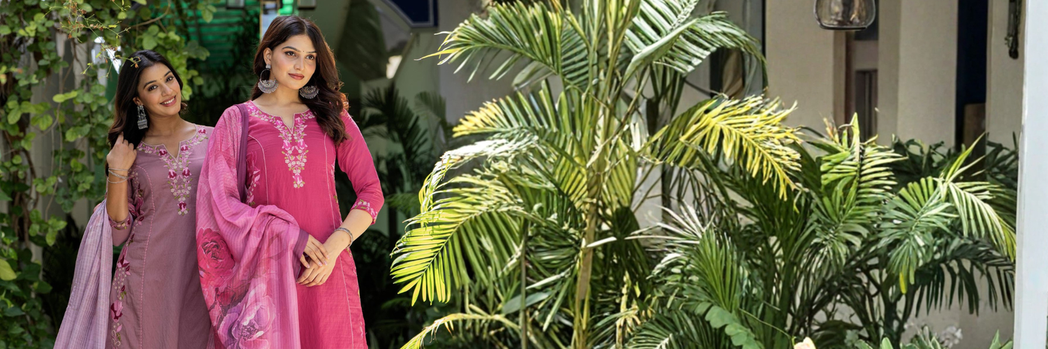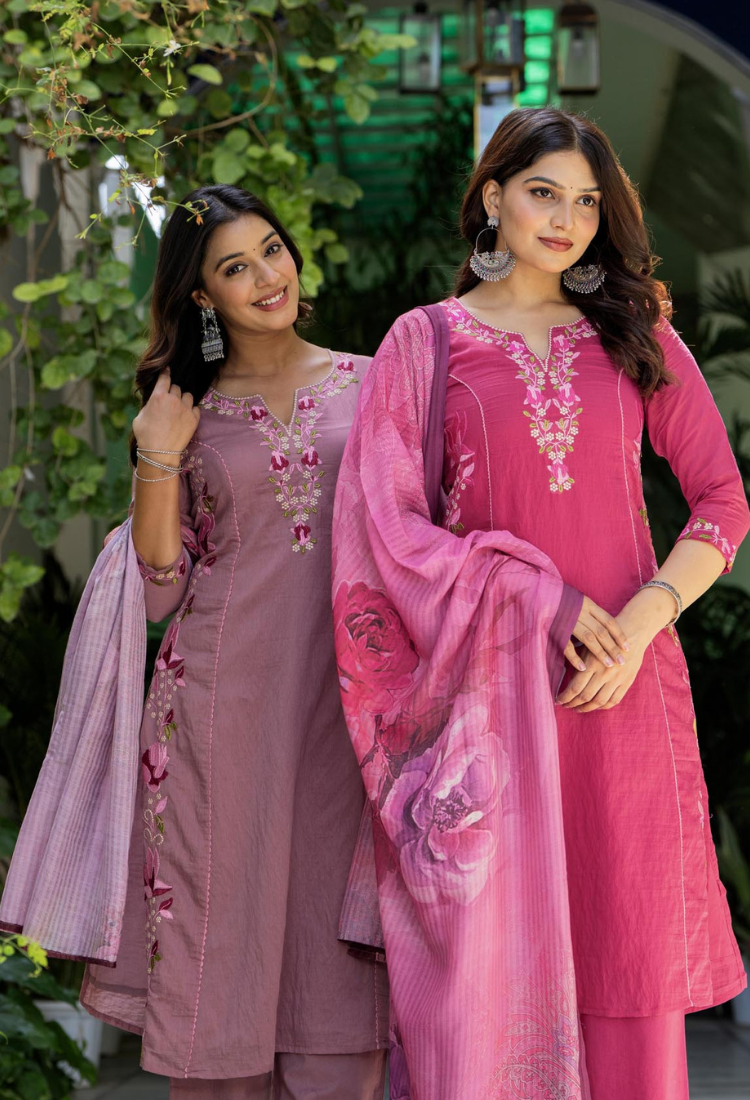 Myaza Women Pink Flower Printed Kurta Pant With Dupatta Set-M2206
