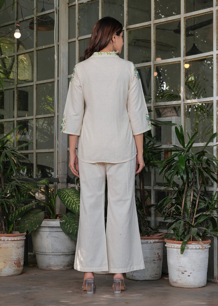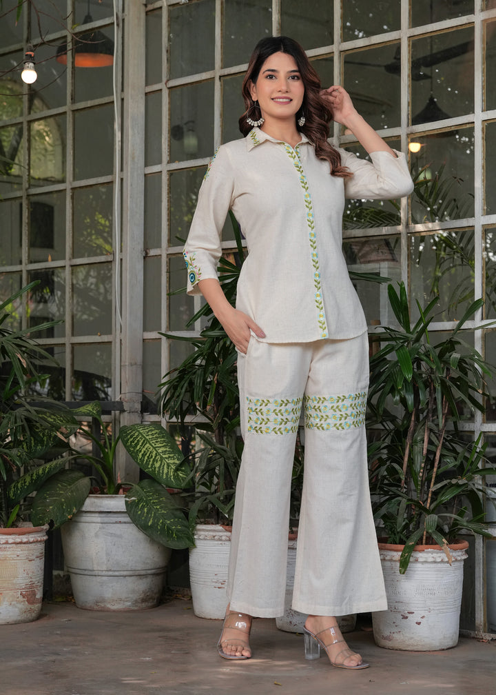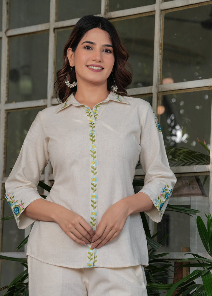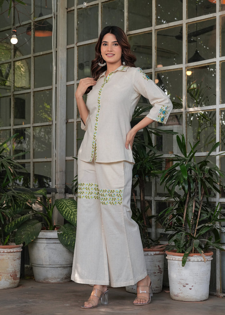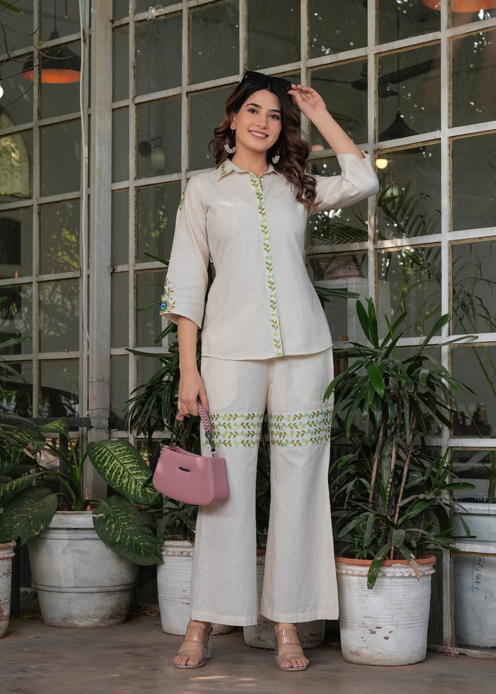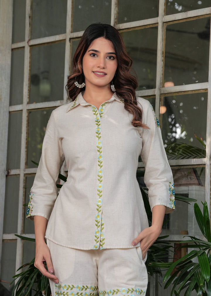 Myaza Women Beige Embroidered Co-ords Set-M1986