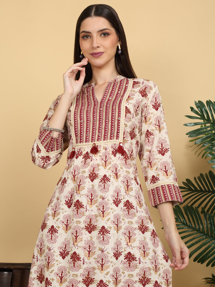 Myaza Women Beige Flower Printed Kurta Pant Set