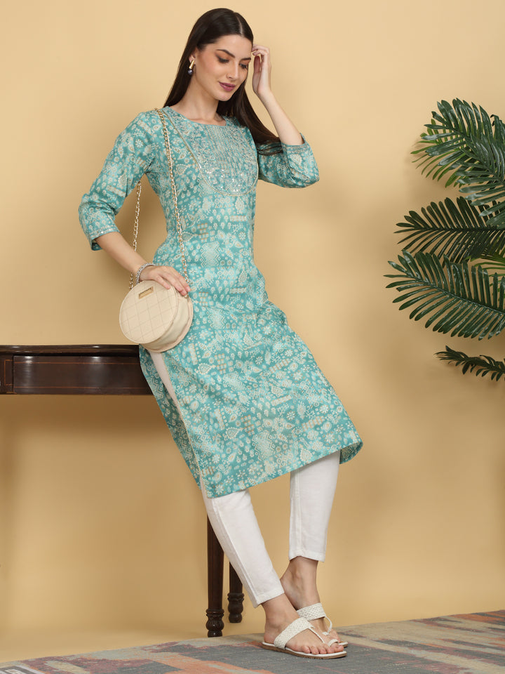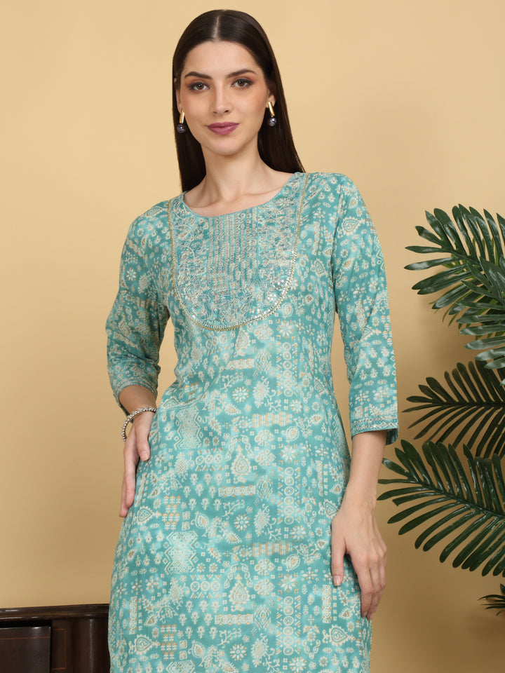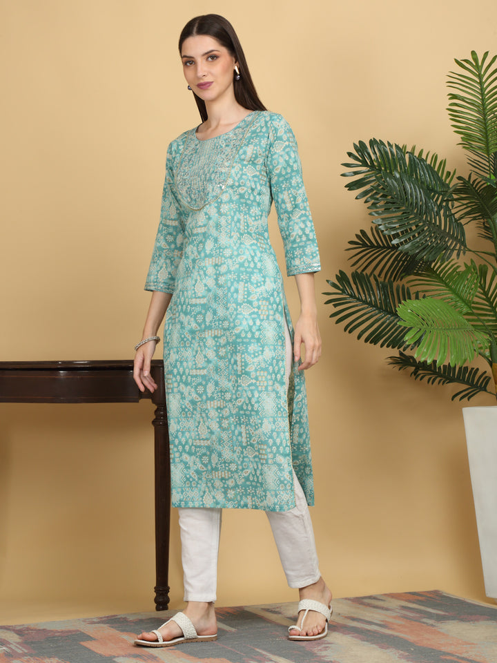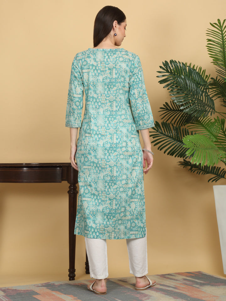 Featuring a charming floral pattern, this women’s Straight kurta adds a soft, feminine touch to your wardrobe. The delicate floral design brings a sense of vibrancy to this outfit, making it ideal for both casual and semi-formal occasions. And, its detailed yet simple print complements a range of accessories, allowing for versatile styling options.