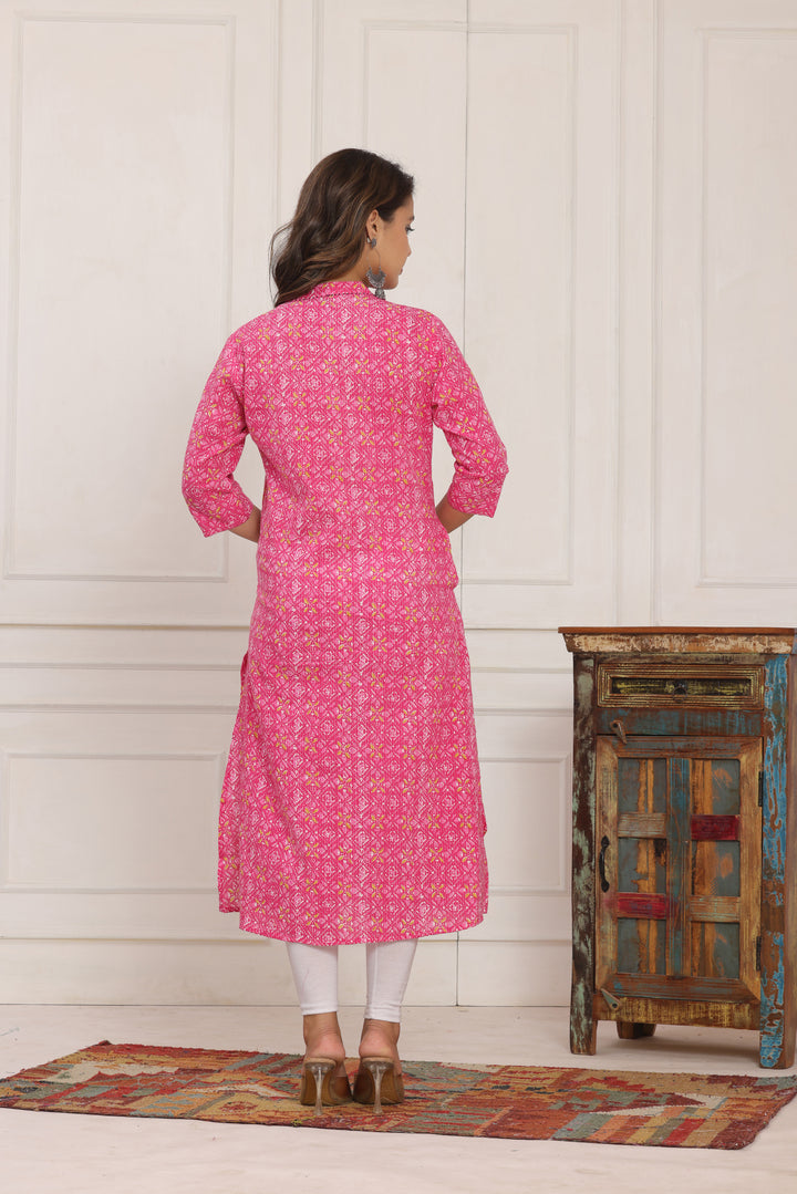 Featuring a charming floral pattern, this women’s Straight kurta adds a soft, feminine touch to your wardrobe. The delicate floral design brings a sense of vibrancy to this outfit, making it ideal for both casual and semi-formal occasions. And, its detailed yet simple print complements a range of accessories, allowing for versatile styling options.