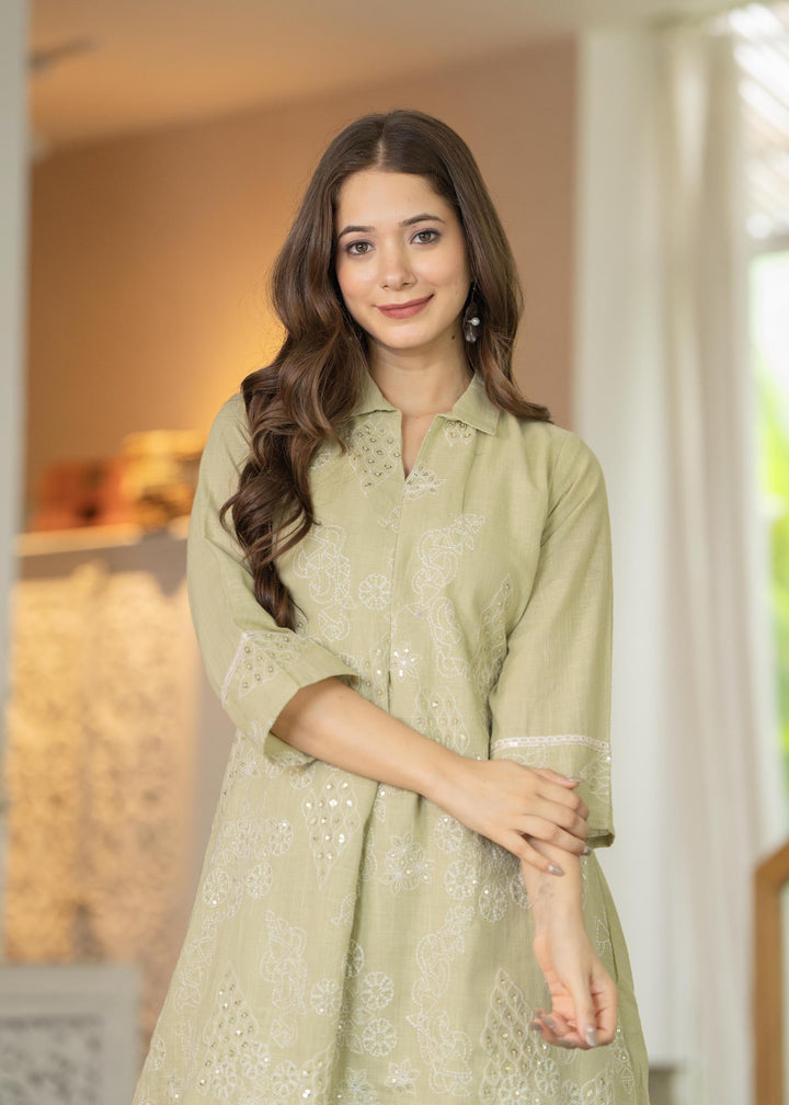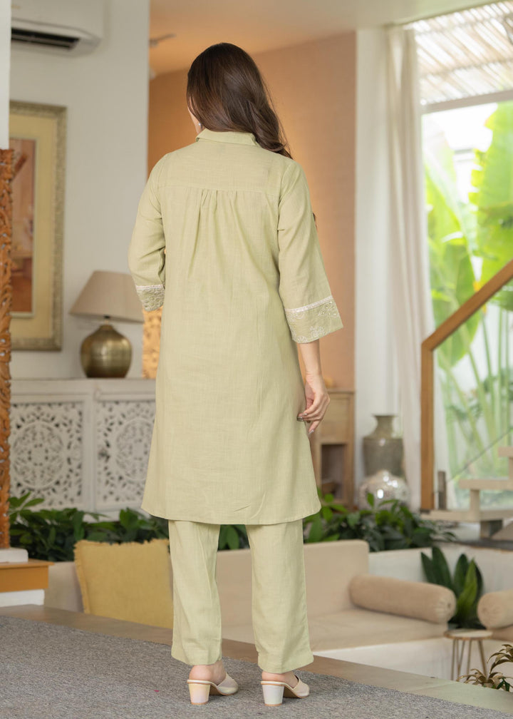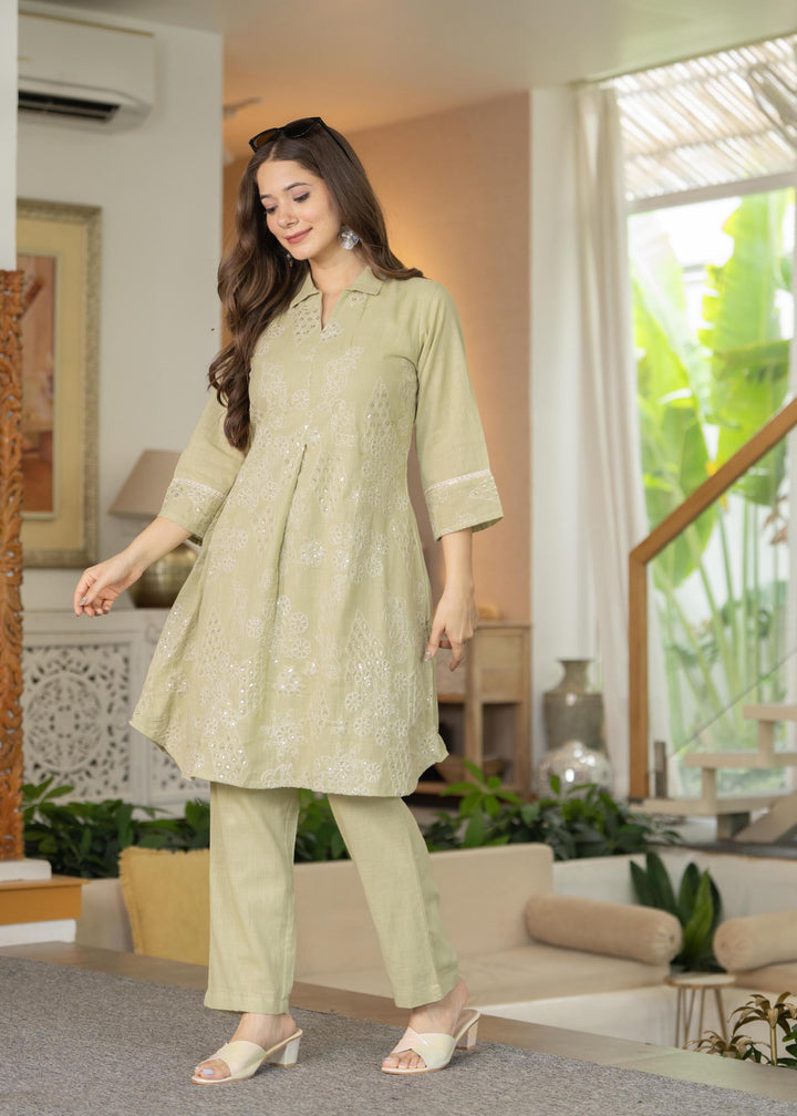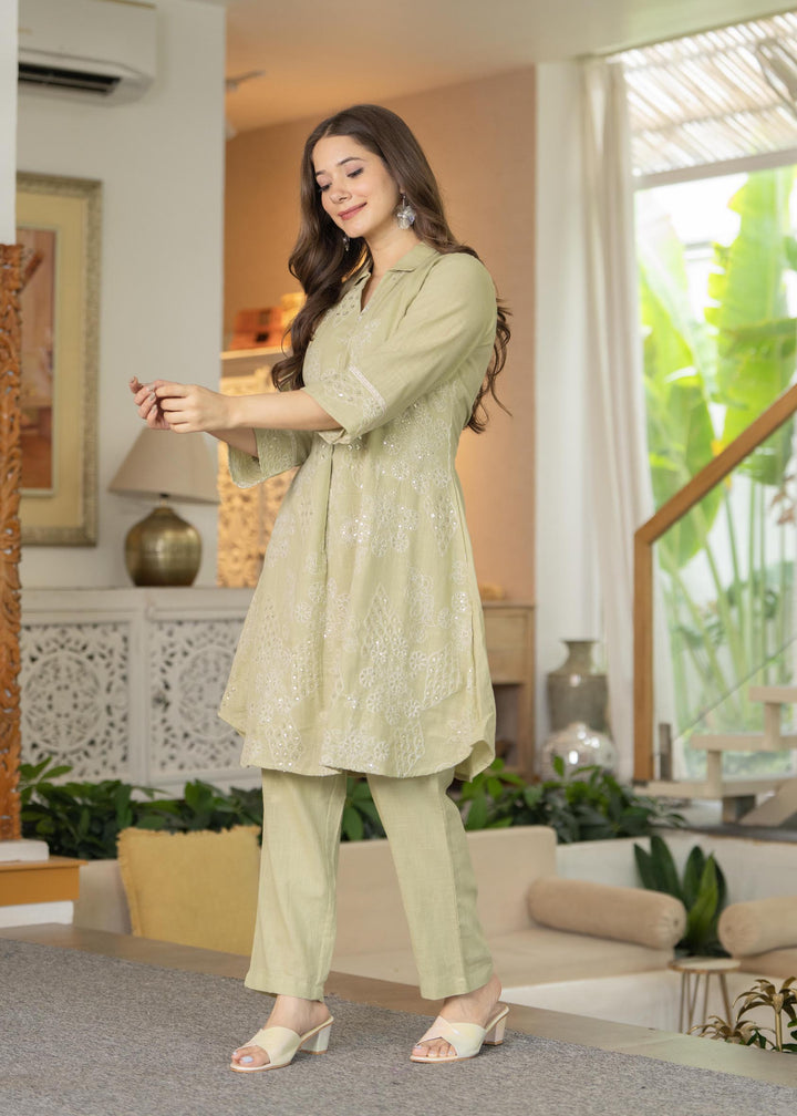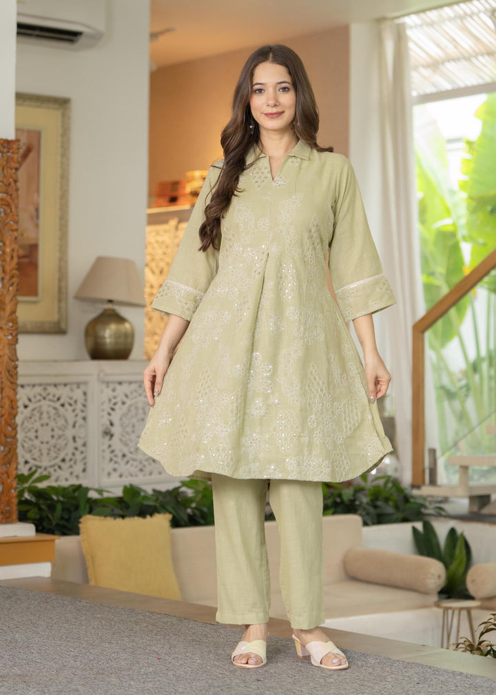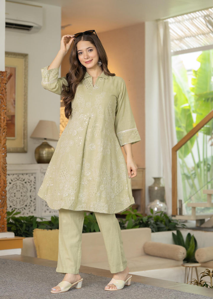 myaza Look like a dream wearing Cord Set. Made from Cotton Flax Fabric, this Cord Set is light in weight and perfect for party wear. This Co-Ord Set offers excellent comfort and stylised with Mandirain neck. This attractive Cord Set will surely fetch you compliments for your rich sense of style.