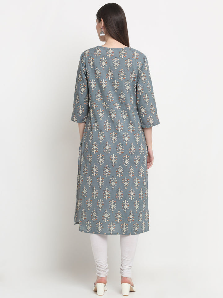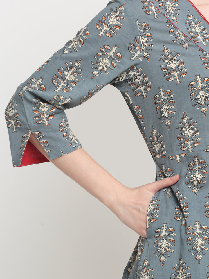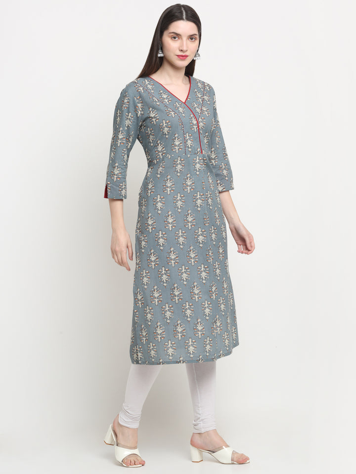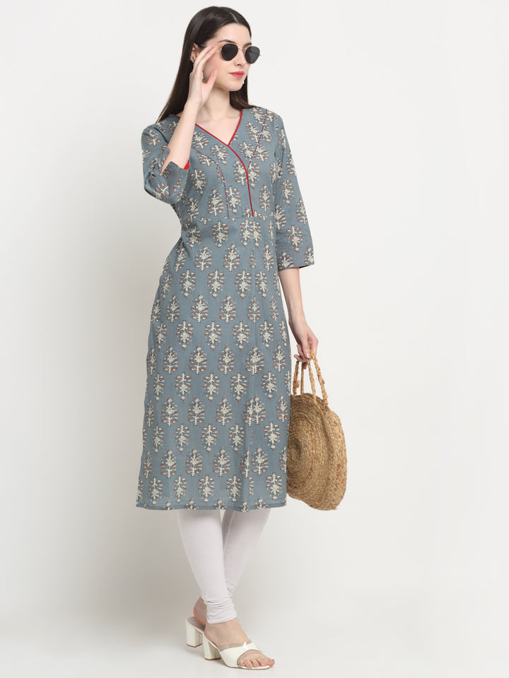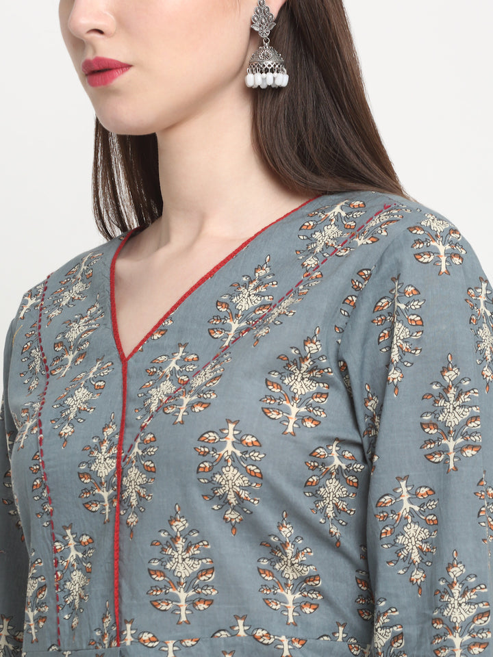 Women's Grey Gray Cotton Printed A Line Kurta