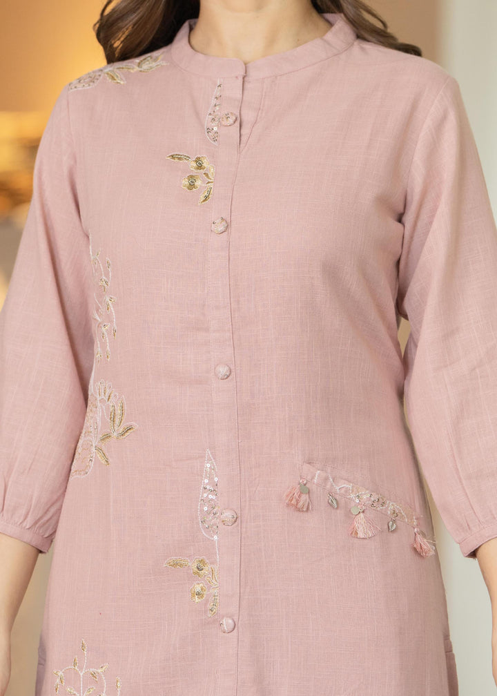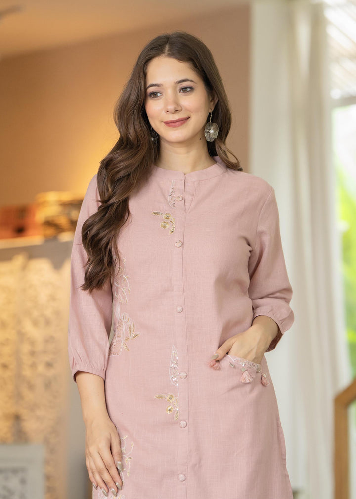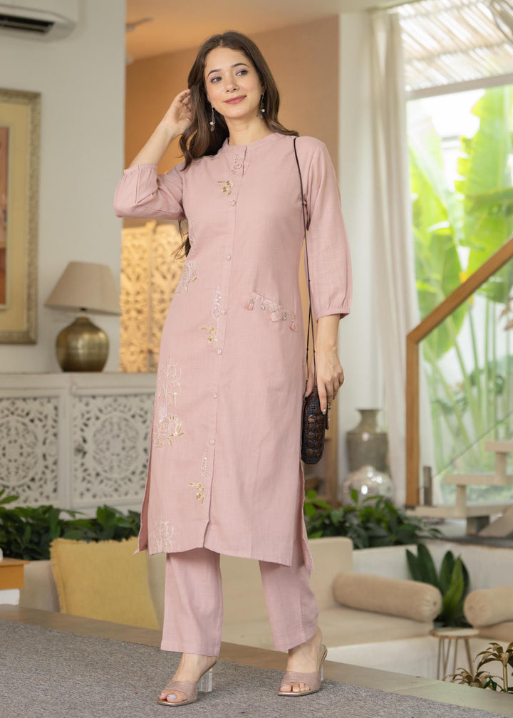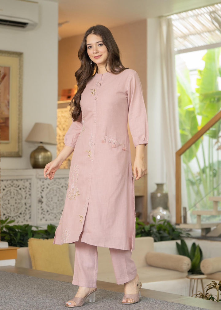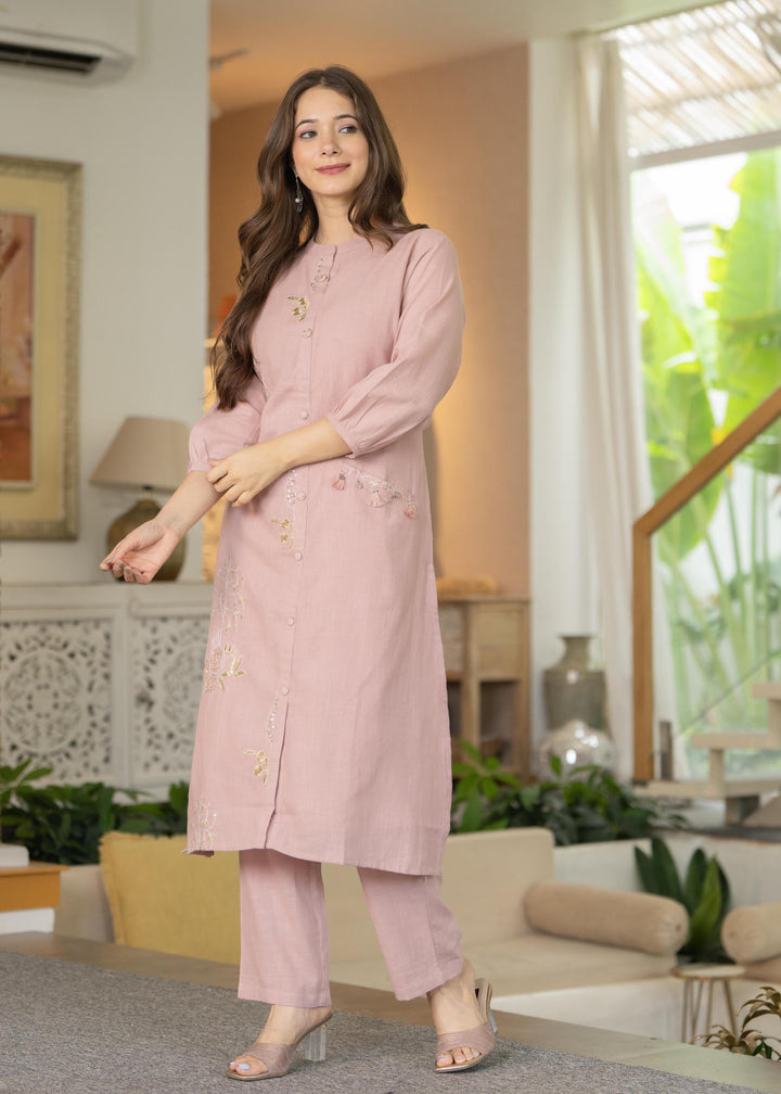 Myaza Women Pink Embroidary Log Co-Ord Set