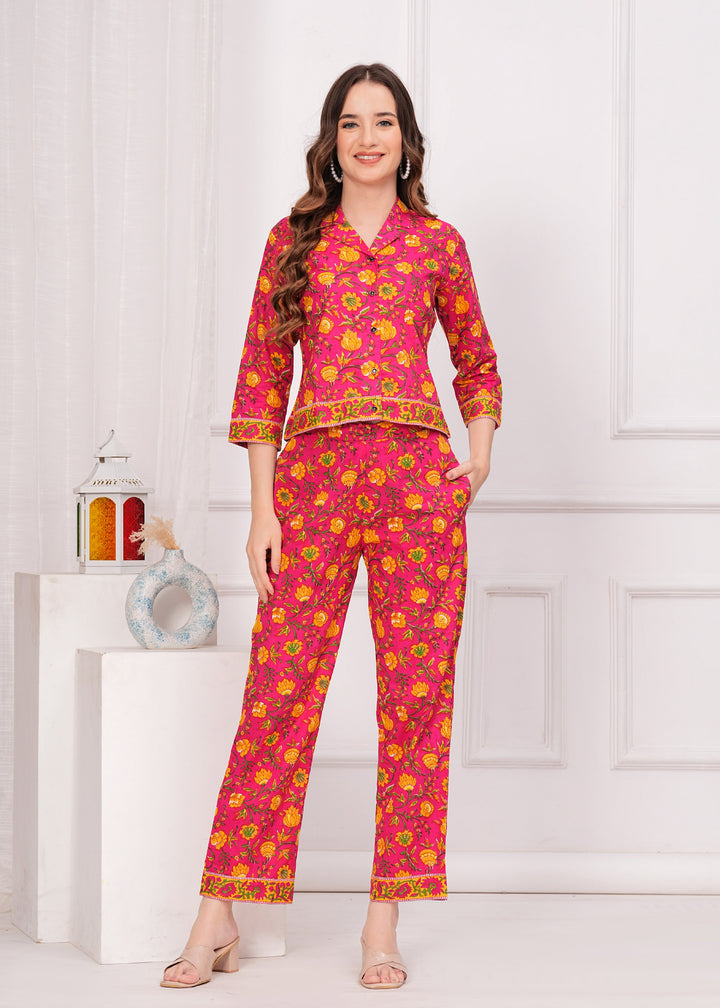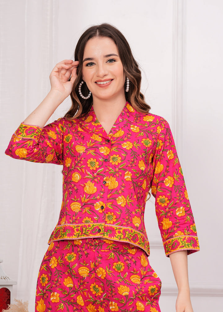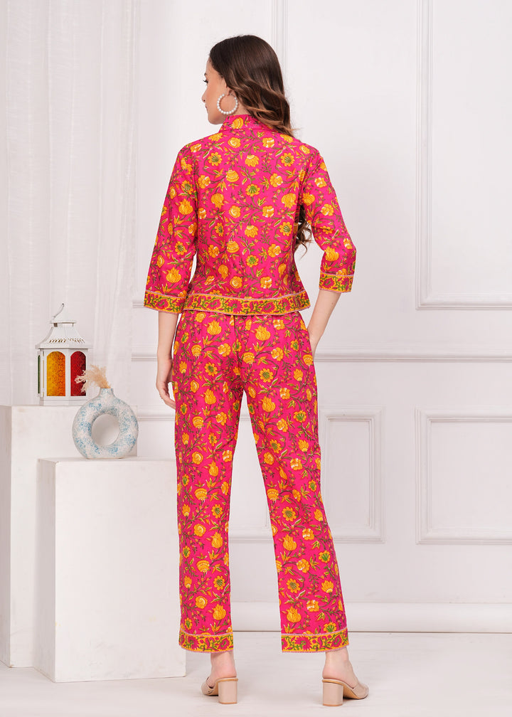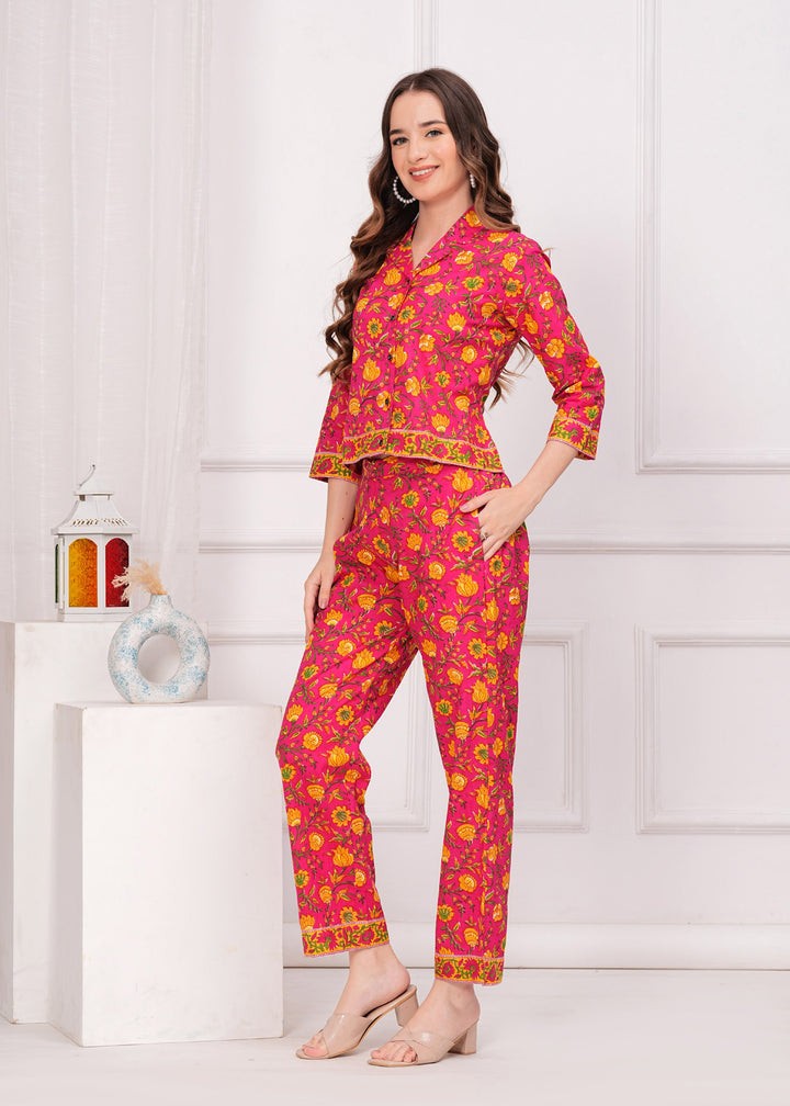 Myaza Women Pink Flower Printed Co-Ord Se-M1788