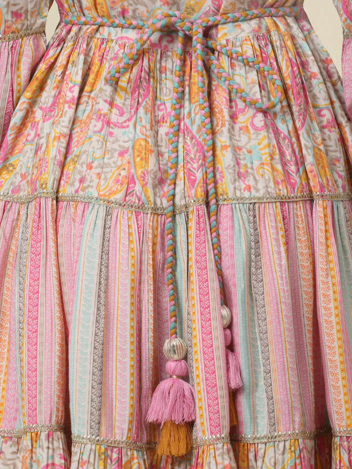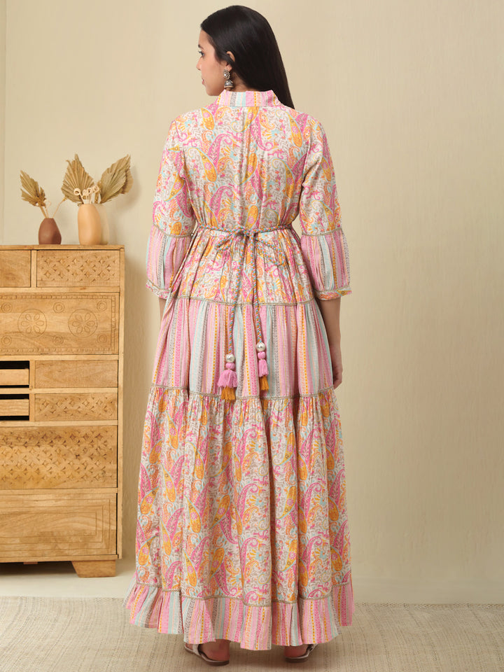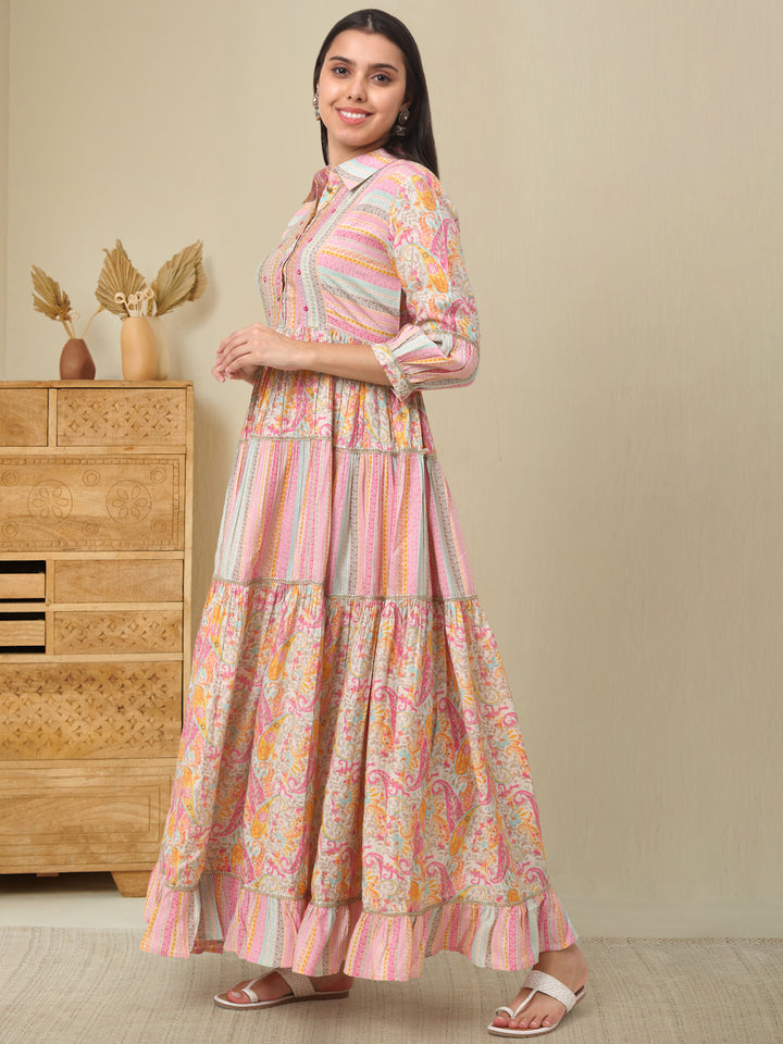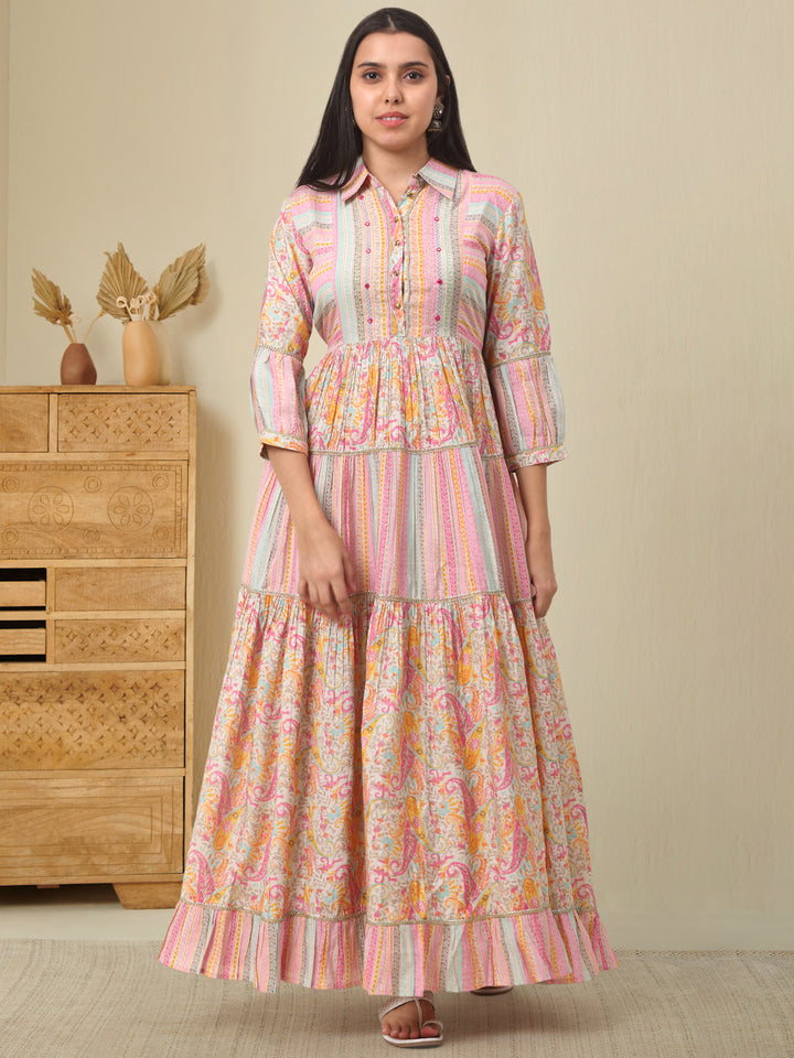 Women's Pink Pink Modal chanderi Printed Kurta Gown
