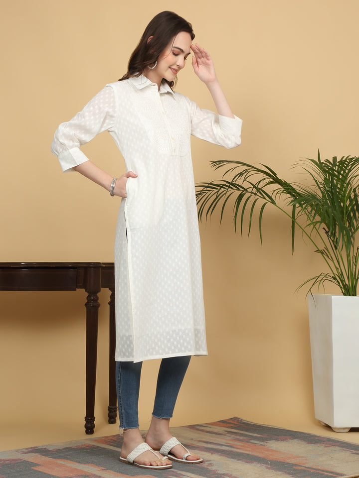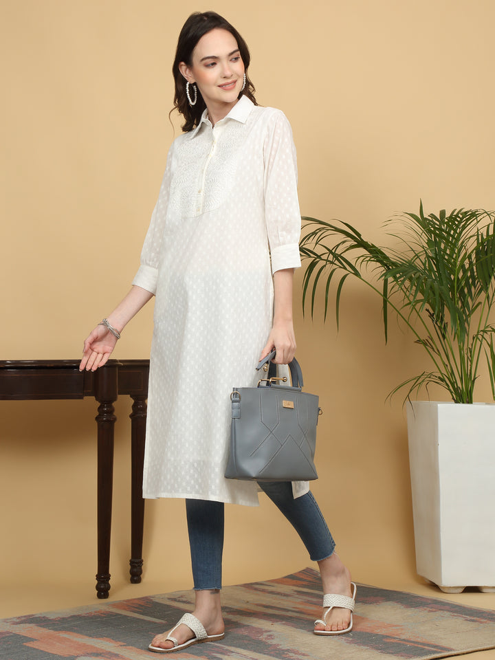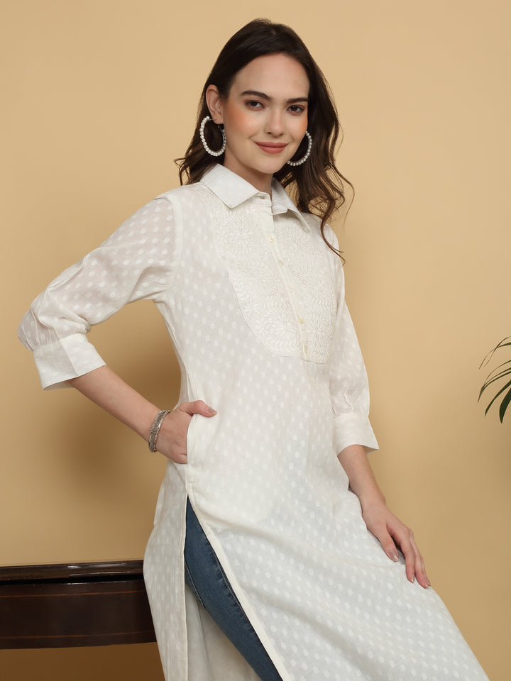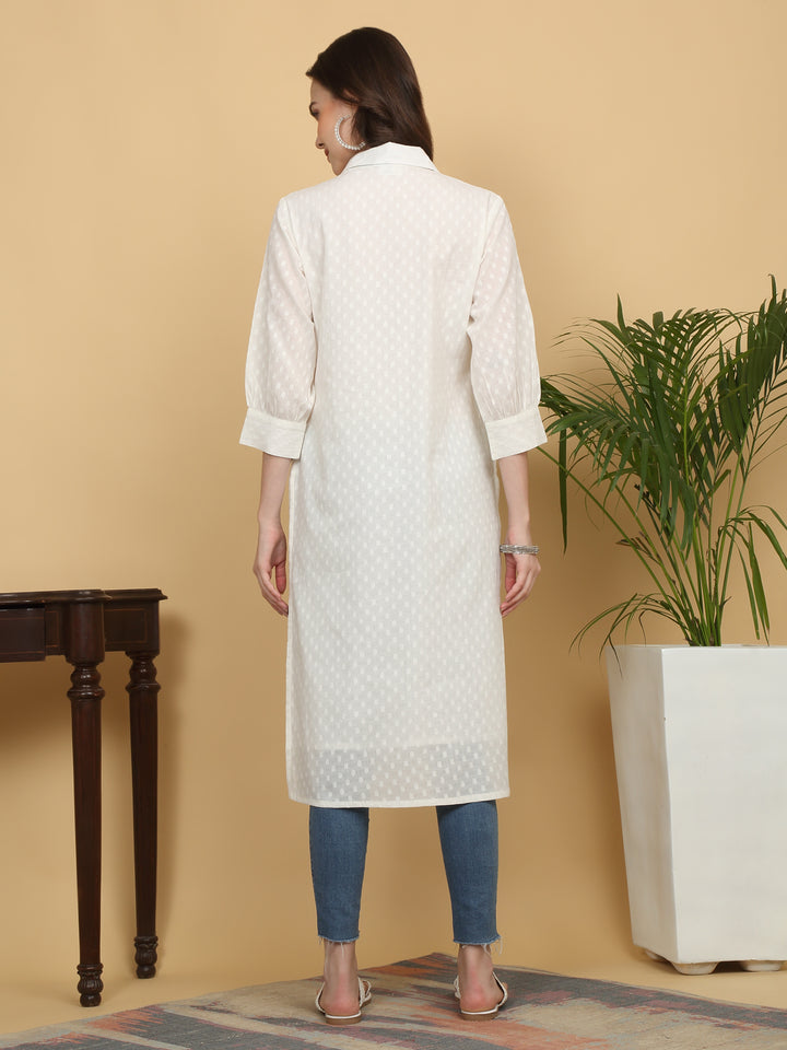 Women's White Cotton Printed Cotton Blend Straight Kurta