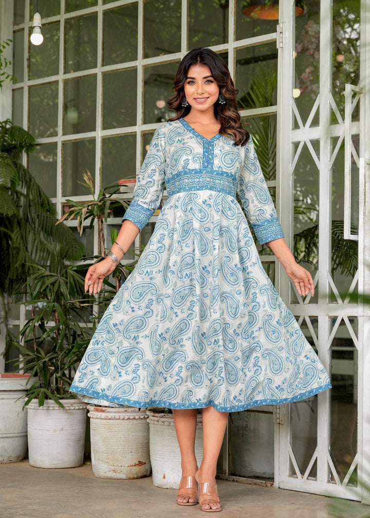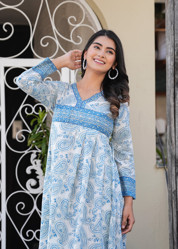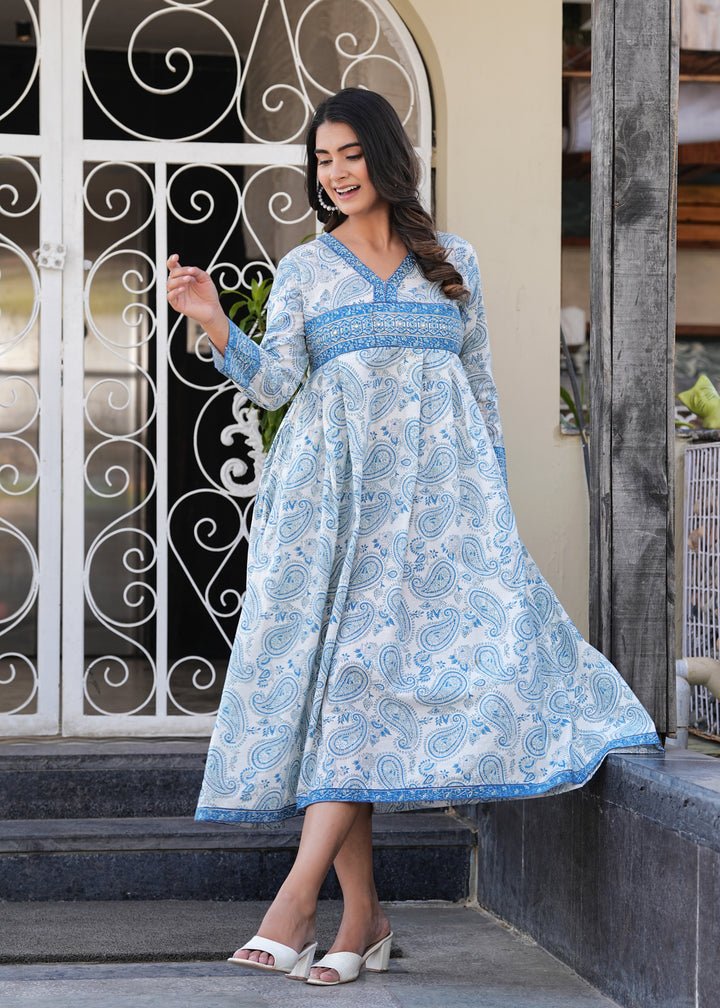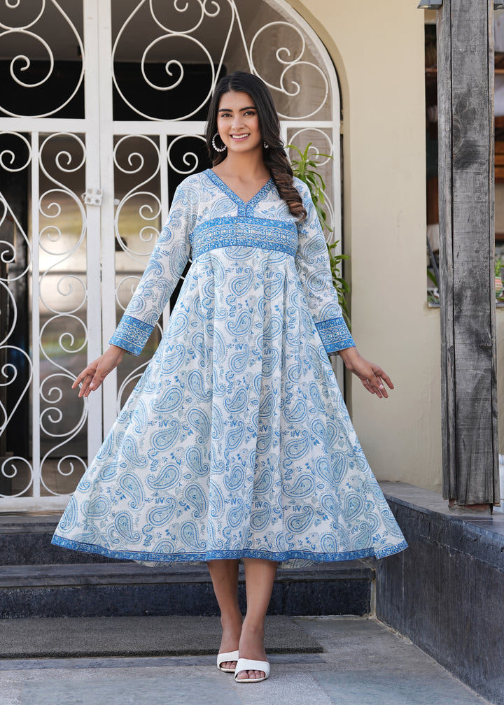 Women's Floral; white Cotton Printed Pure Cotton Anarkali Kurta