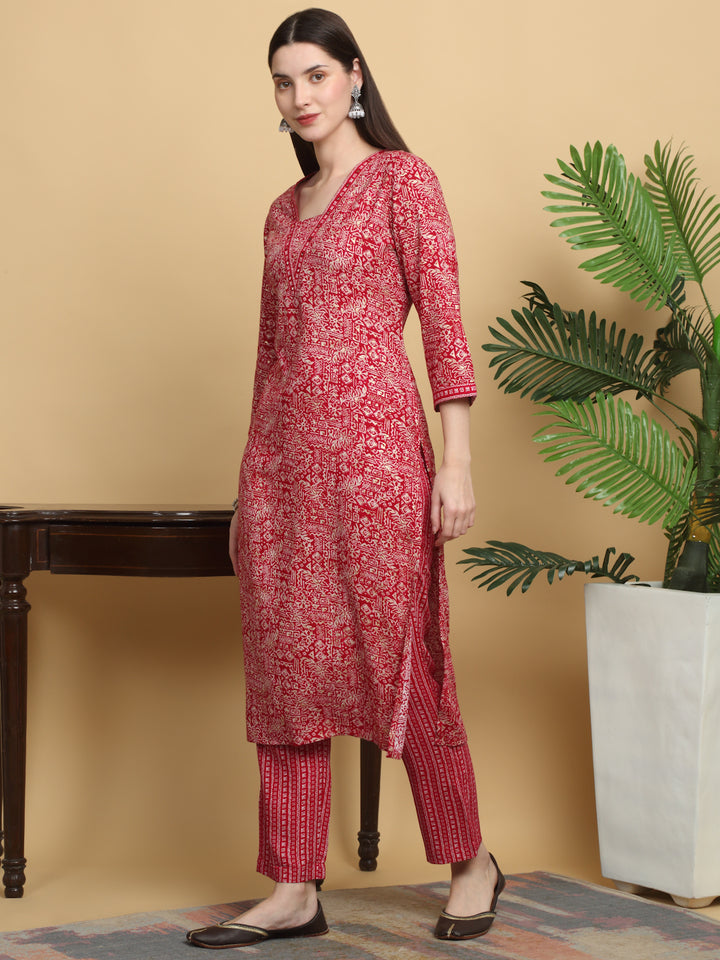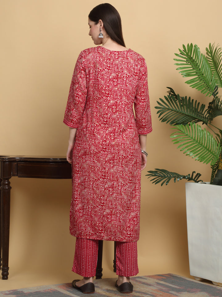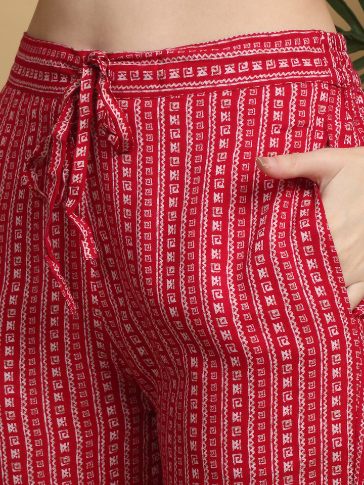 Myaza Women Red Printed Kurta Pant Set