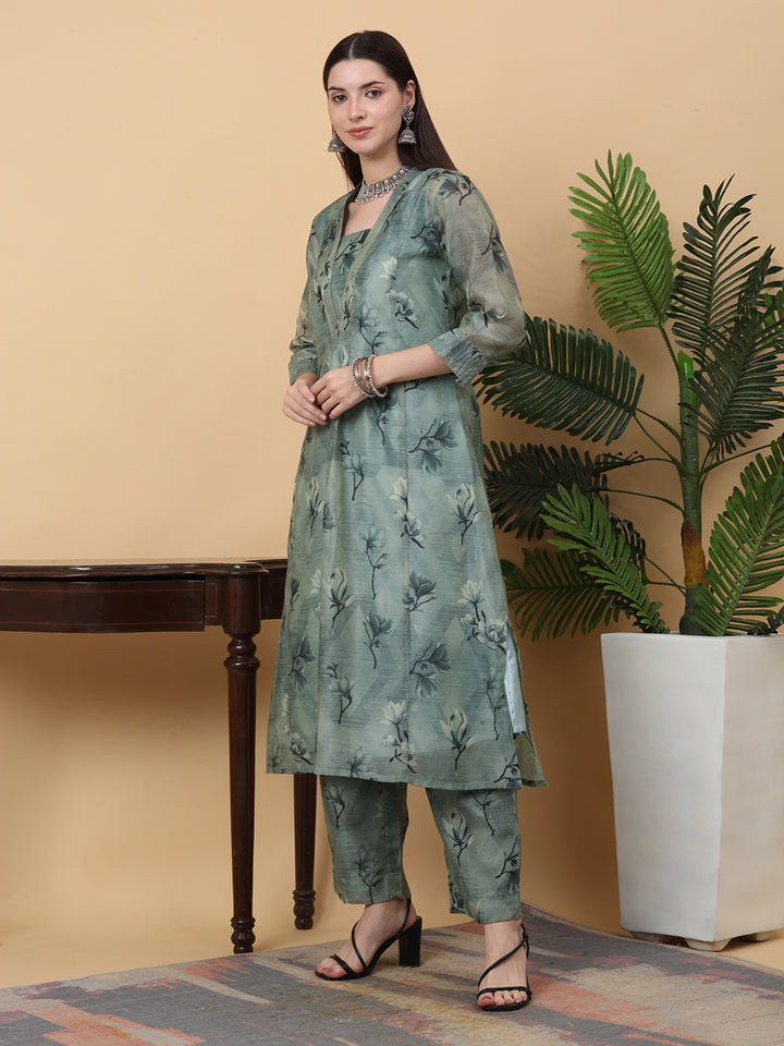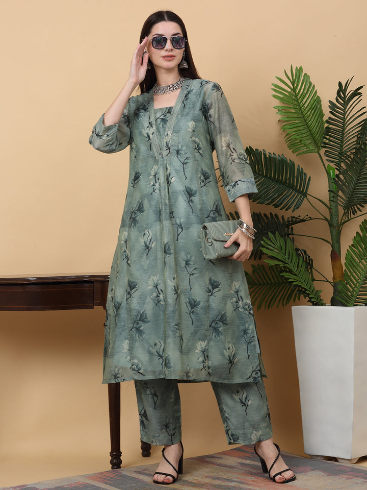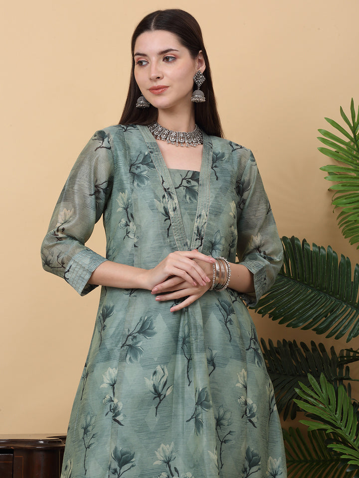 Elevate your ethnic wardrobe with this sophisticated SEA green printed Chandri kurta, thoughtfully designed for the modern Indian woman. The kurta features intricate traditional prints that showcase timeless craftsmanship, while the lightweight Chandri fabric ensures breathable comfort throughout the day. Paired with a matching inner kurta for layered elegance and a complementary dupatta, this ensemble offers versatile styling options for festivals, celebrations, or everyday wear. The expert construction and quality materials make this a reliable choice for those who value both aesthetic appeal and wearability.