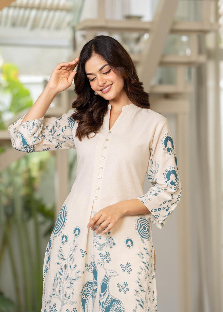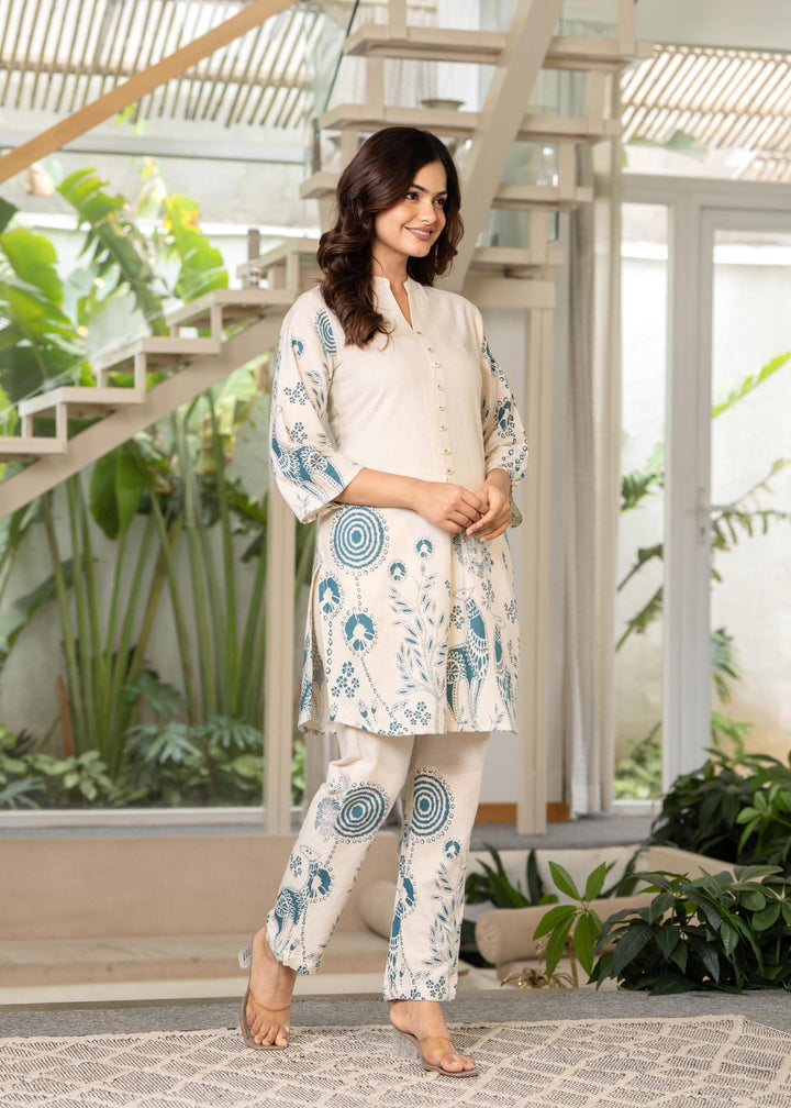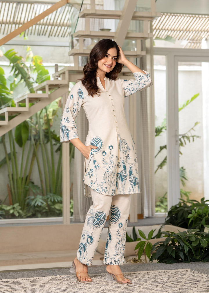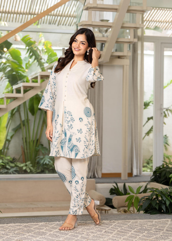 myaza Look like a dream wearing Cord Set. Made from Cotton Flax Fabric, this Cord Set is light in weight and perfect for party wear. This Co-Ord Set offers excellent comfort and stylised with Mandirain neck. This attractive Cord Set will surely fetch you compliments for your rich sense of style.