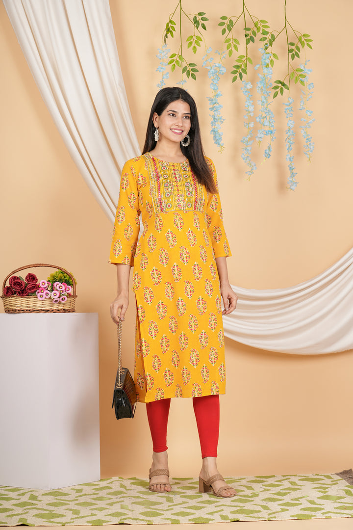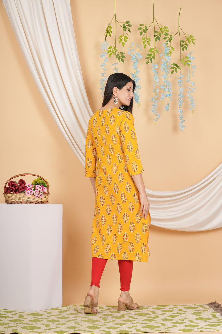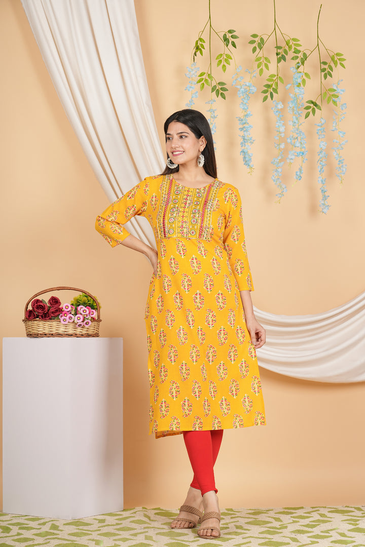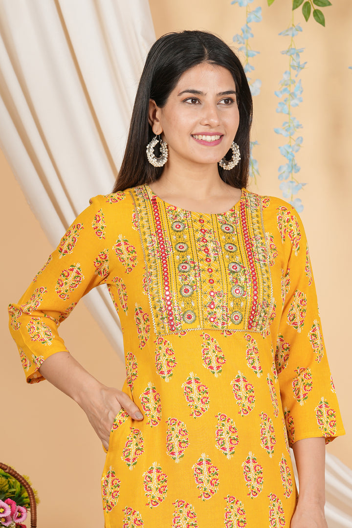 Women's Yellow Floral Yellow Rayon Print Ethnic Dress Kurta