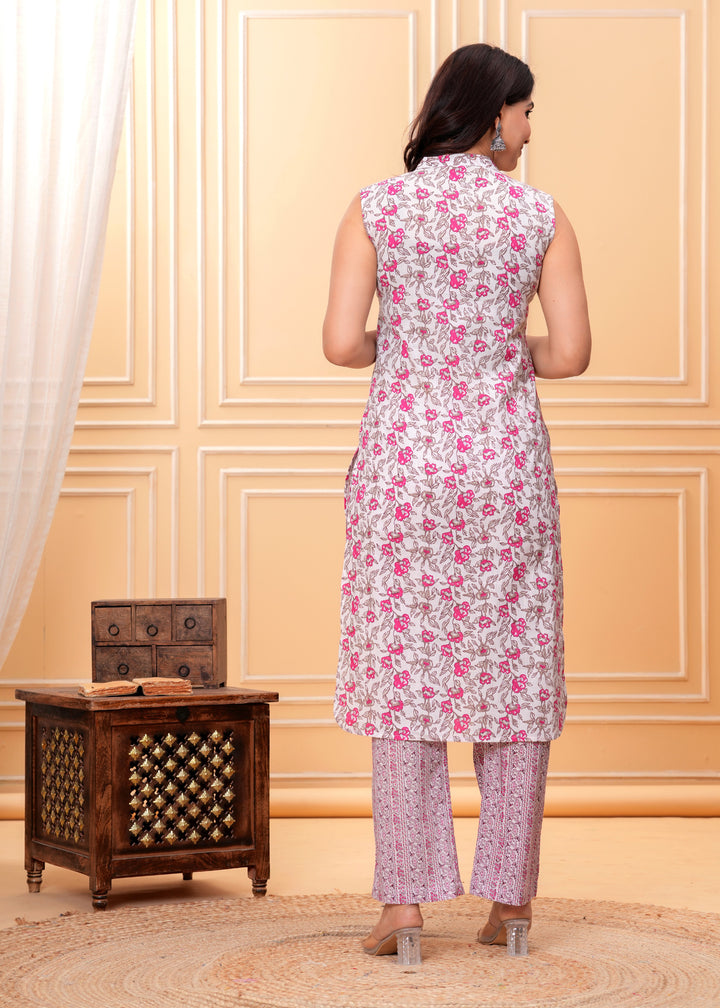 Myaza WomenPink Flower Printed Kurta Pant Set
