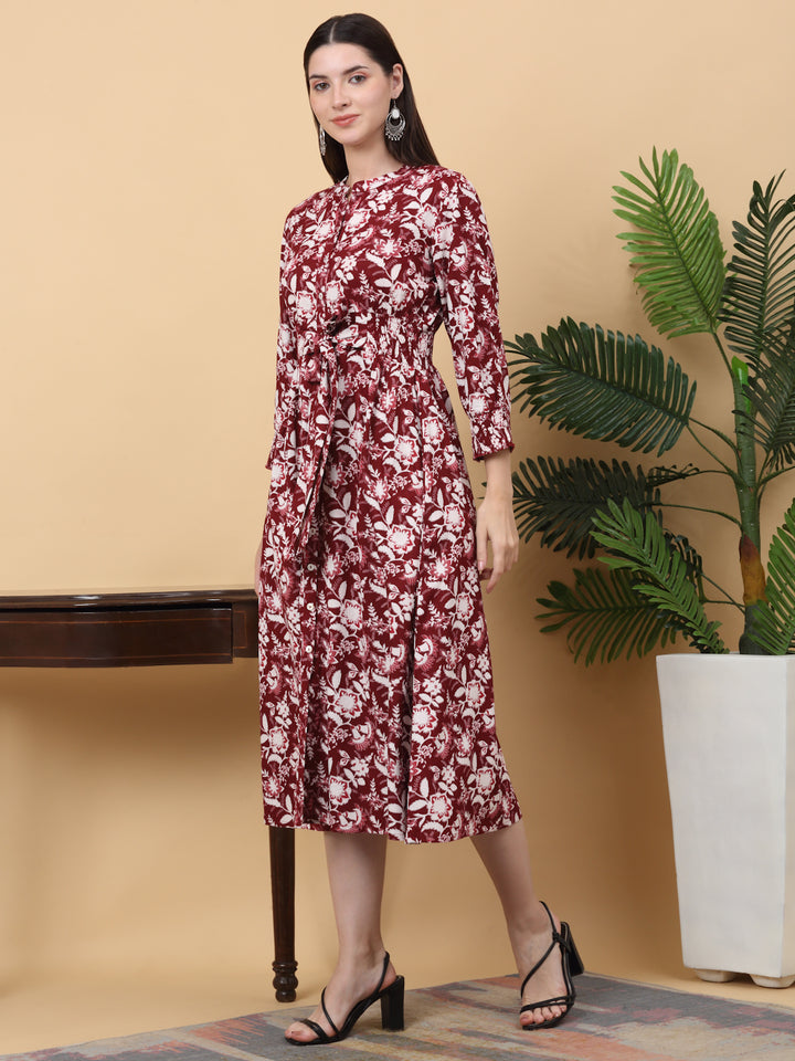 MyazaWomen's Mroon Flower Red Cotton Printed Kurta Dresse