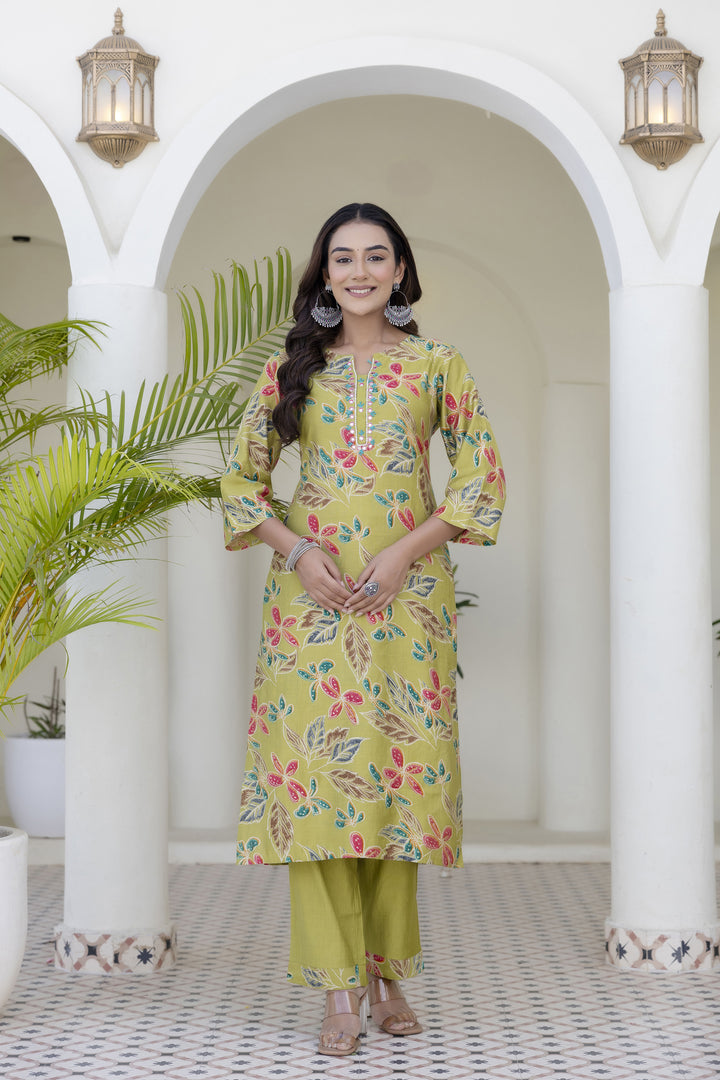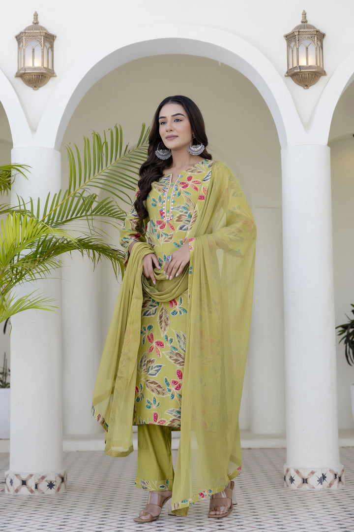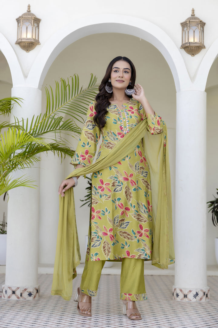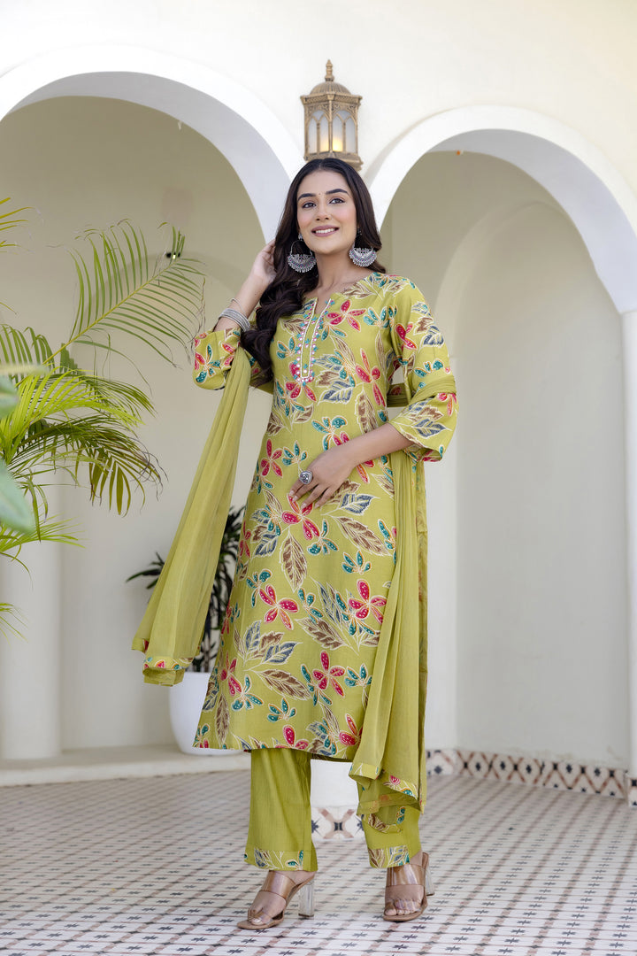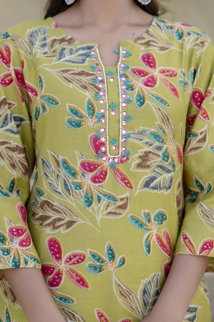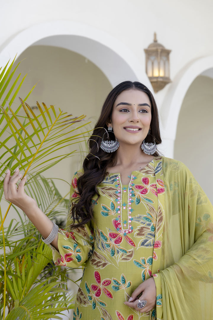 Green Cotton Kurta Pant Duptta Set