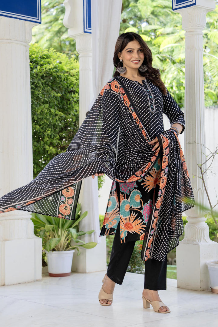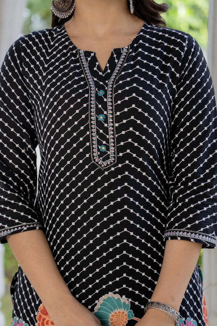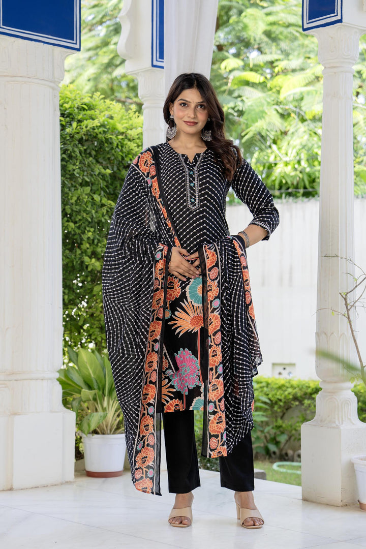 Myaza Black Kurta Pant Set with Dupatta | Elegant Cotton Fabric Set for Women | Stylish & Comfortable Wear | Perfect for Festivals, Casual & Formal Occasions